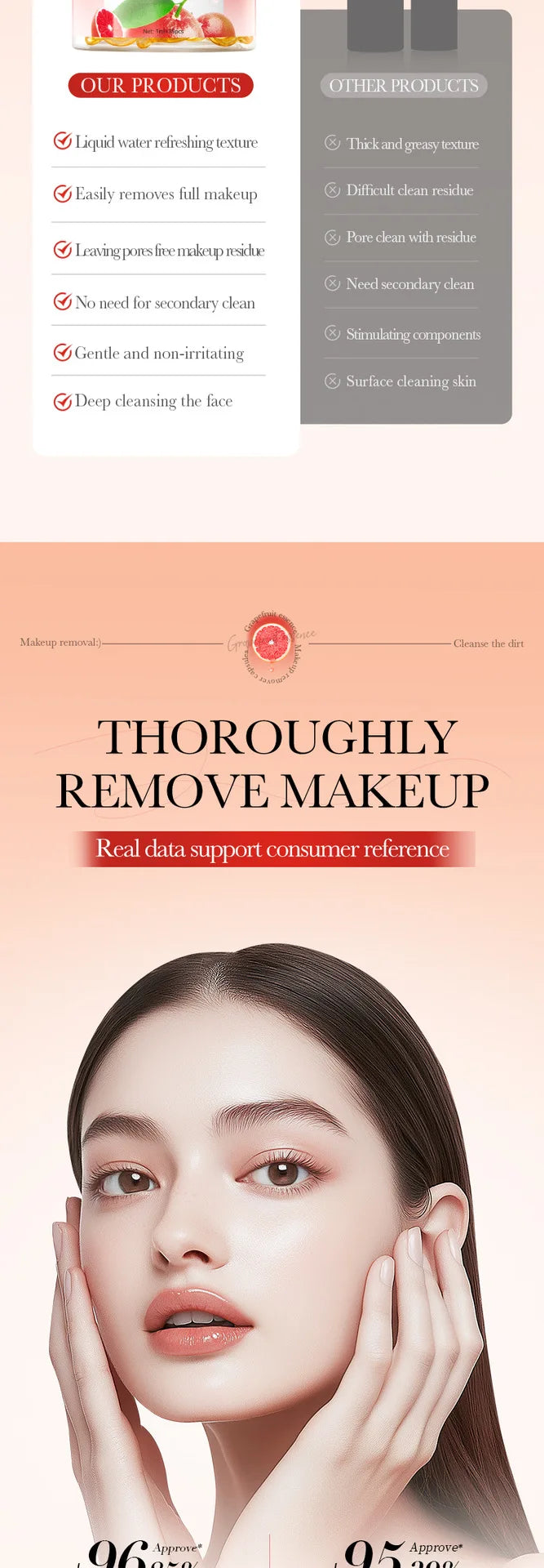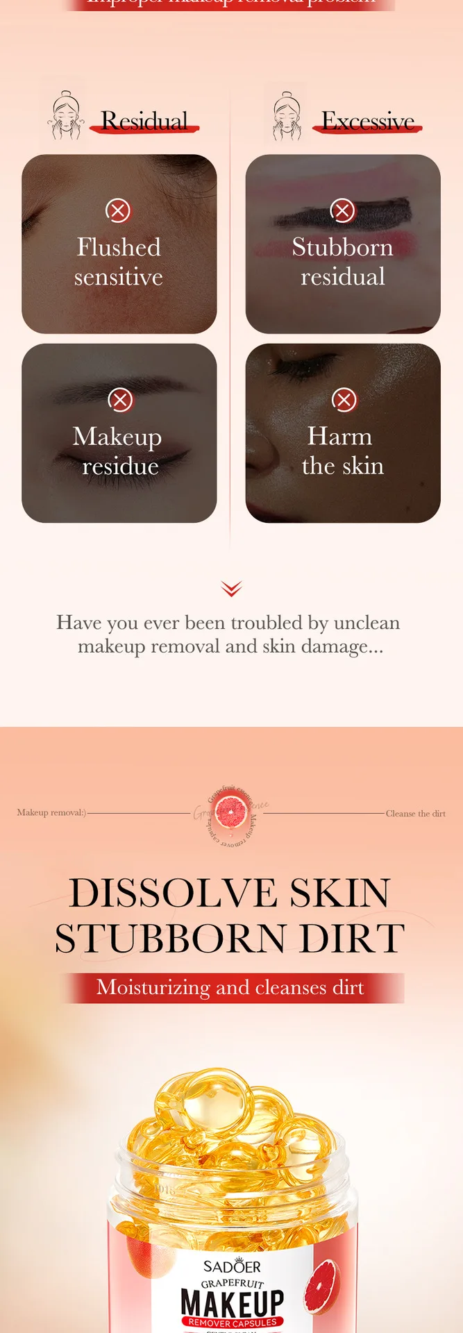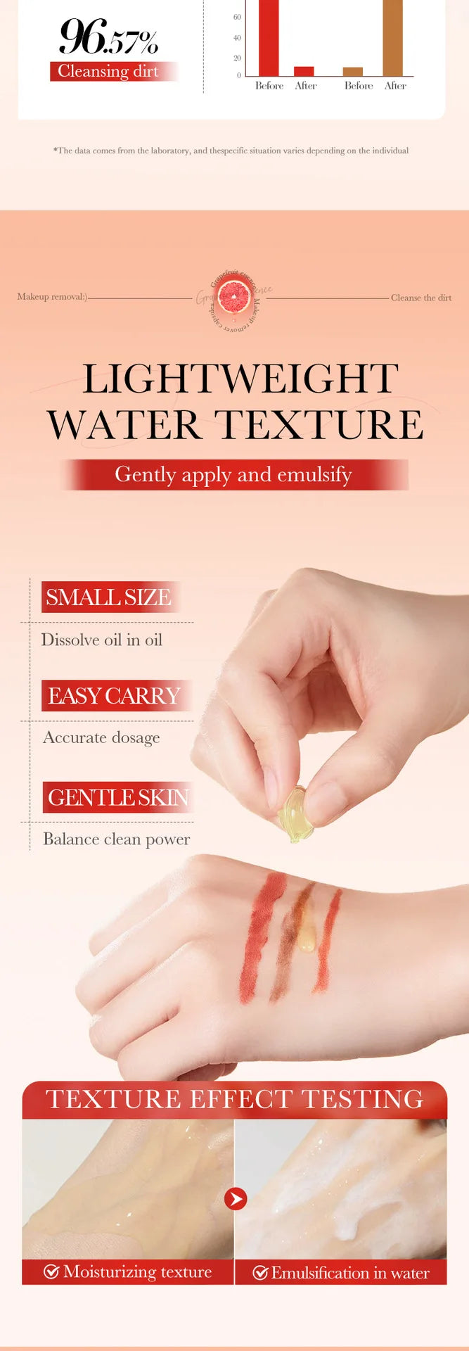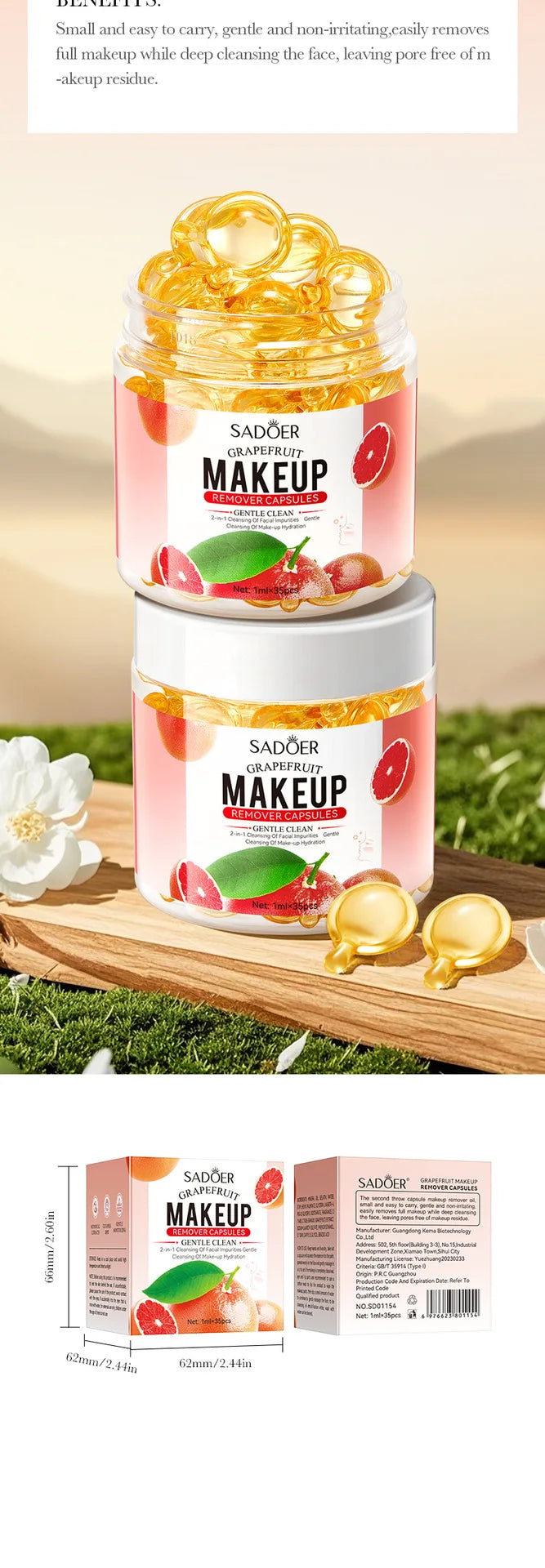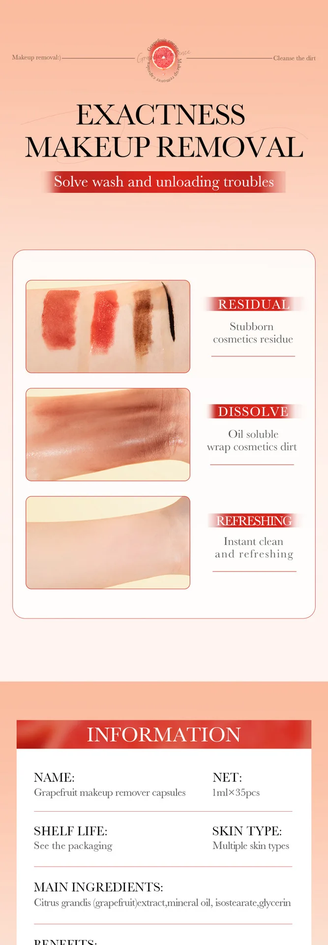 Grapefruit Makeup Remover Capsules - Makeup Remover Oil Cream Cleansing Dissolves Makeup Portable Makeup Remover Capsules