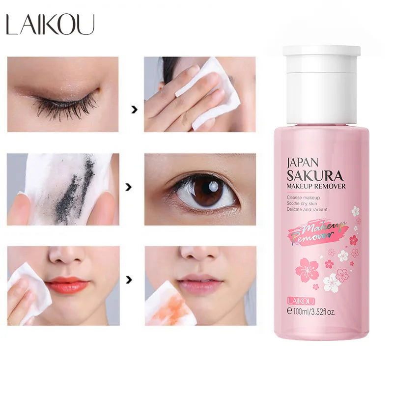 LAIKOU Portable Makeup Remover lashes cleansing Liquid Water Lip Eye Gentle Care Make-Up Travel Skin Remover Face Skincare 100ml