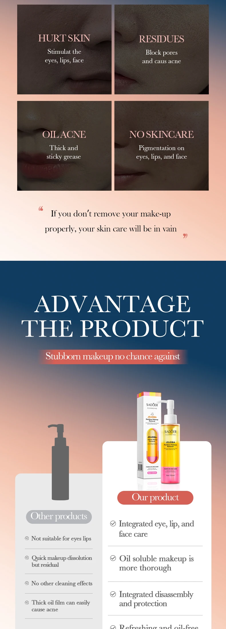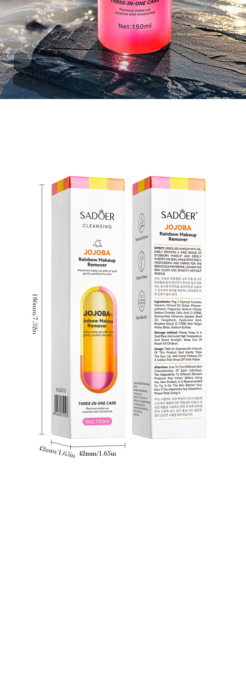 Rainbow Makeup Remover Deep Cleansing Facial Dissolving Gentle Skin Friendly Moisturizing Nourishing Skin Makeup Remover
