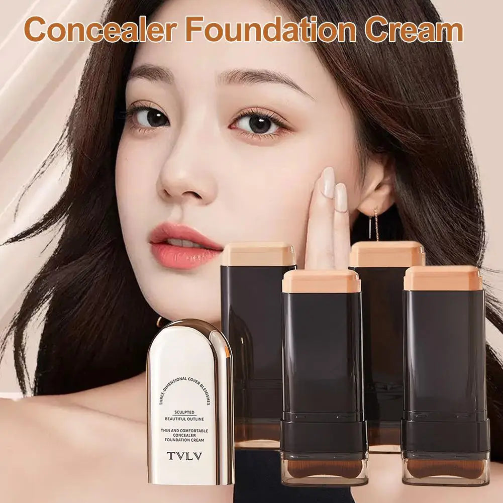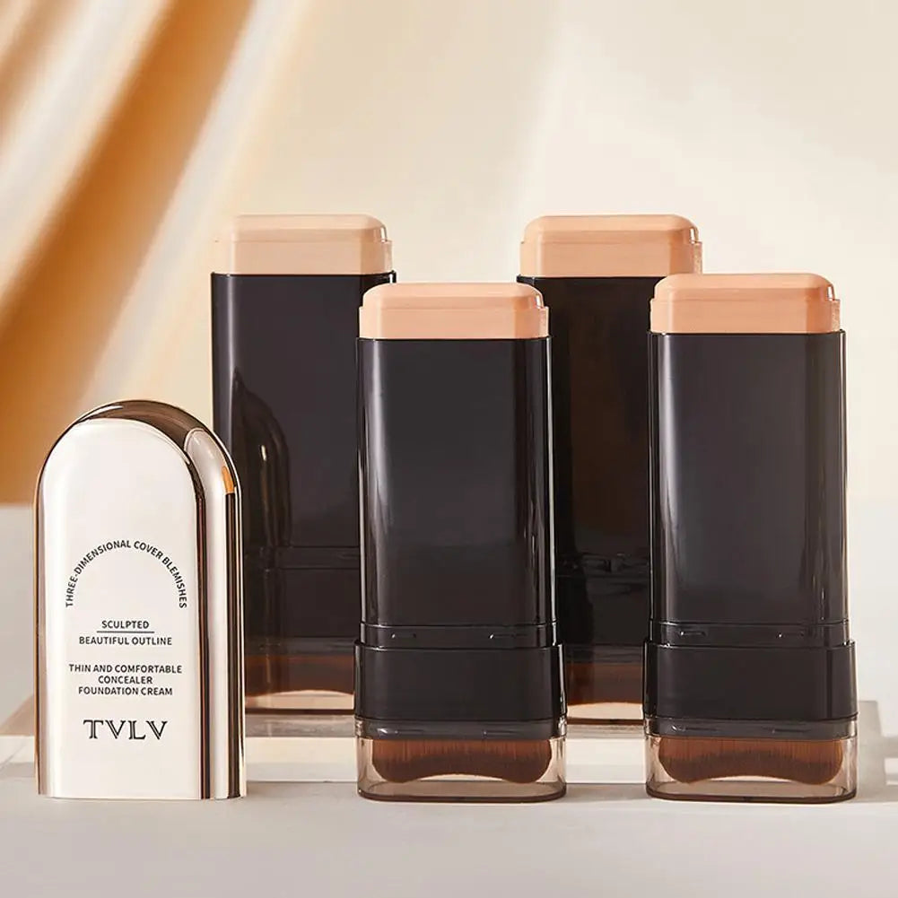 Waterproof Concealer Foundation Stick With Brush - All-in-One Long-Lasting, Oil Control, Brightening Makeup Natural Matte Finish
